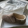 Заказ пришел через Boxberry. Коробка вся помятая, хотела подарить бабушке, но придется думать над товарным видом. Тапочки хорошие, мягкие. В целом если бы не упаковка… товаром довольна